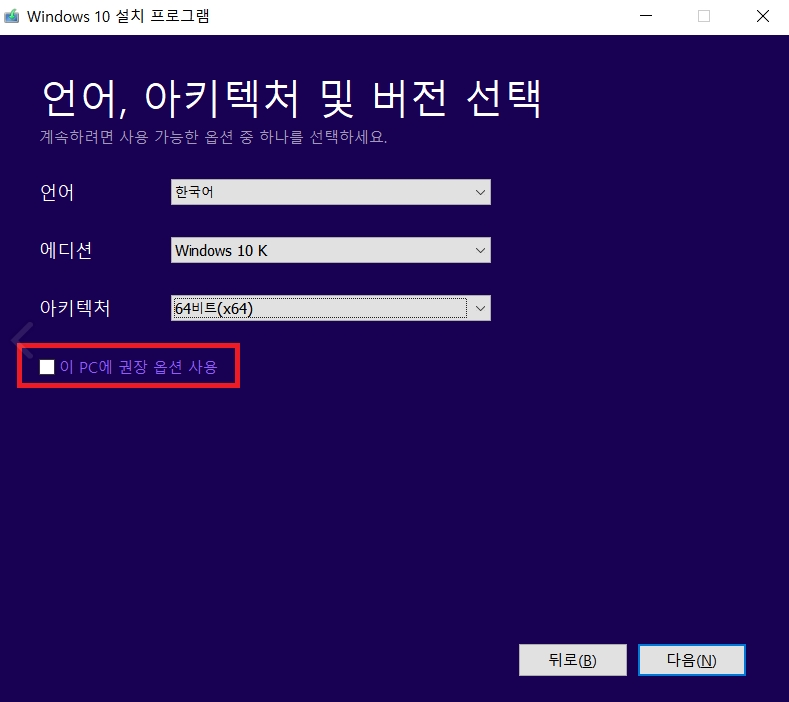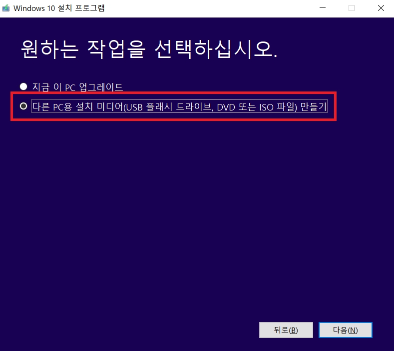 다음을 누르면 업그레이드를 할지 아니면 설치미디어를 만들지