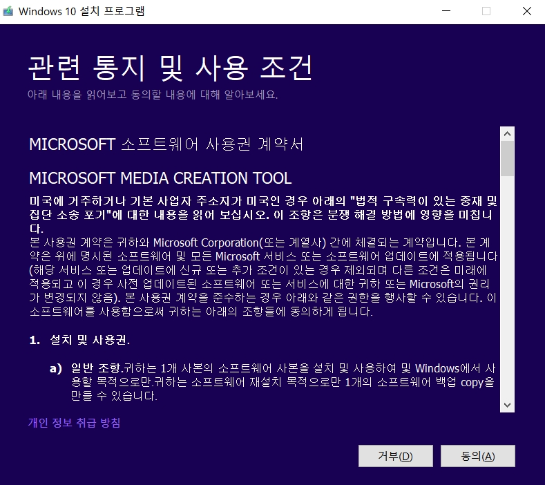 2. mediacreationtool 을 실행 하겠습니다!