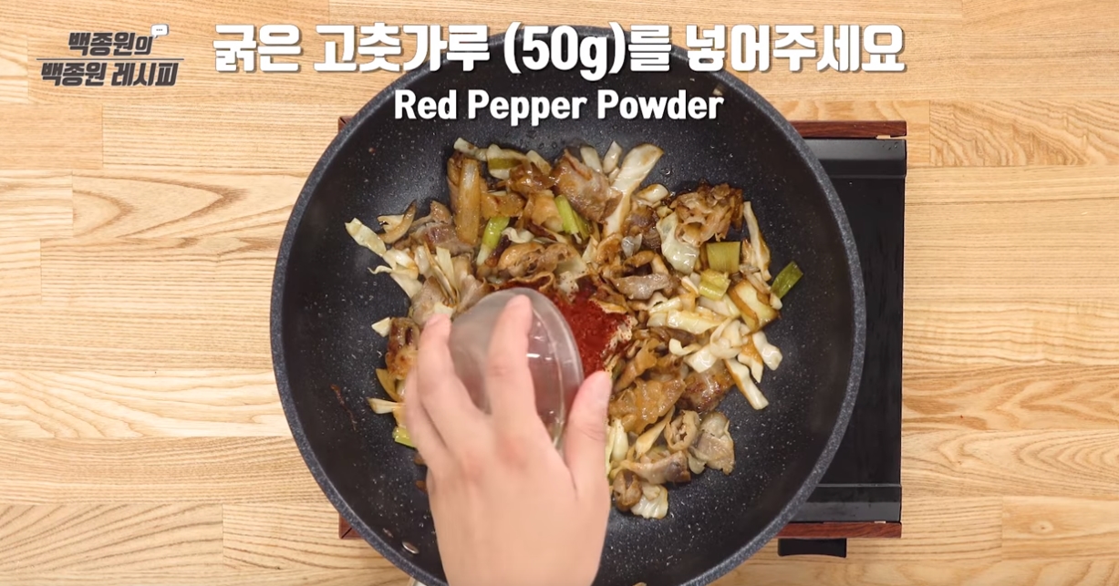 야채에 수분이 있는 상태에서 고춧가루를 볶아야합니다.