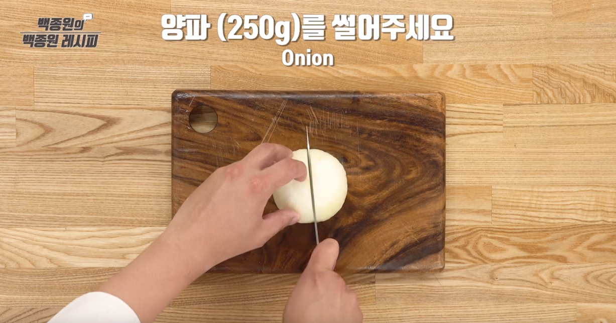 양파도 송송송송 썰어 주도록 하겠습니다.