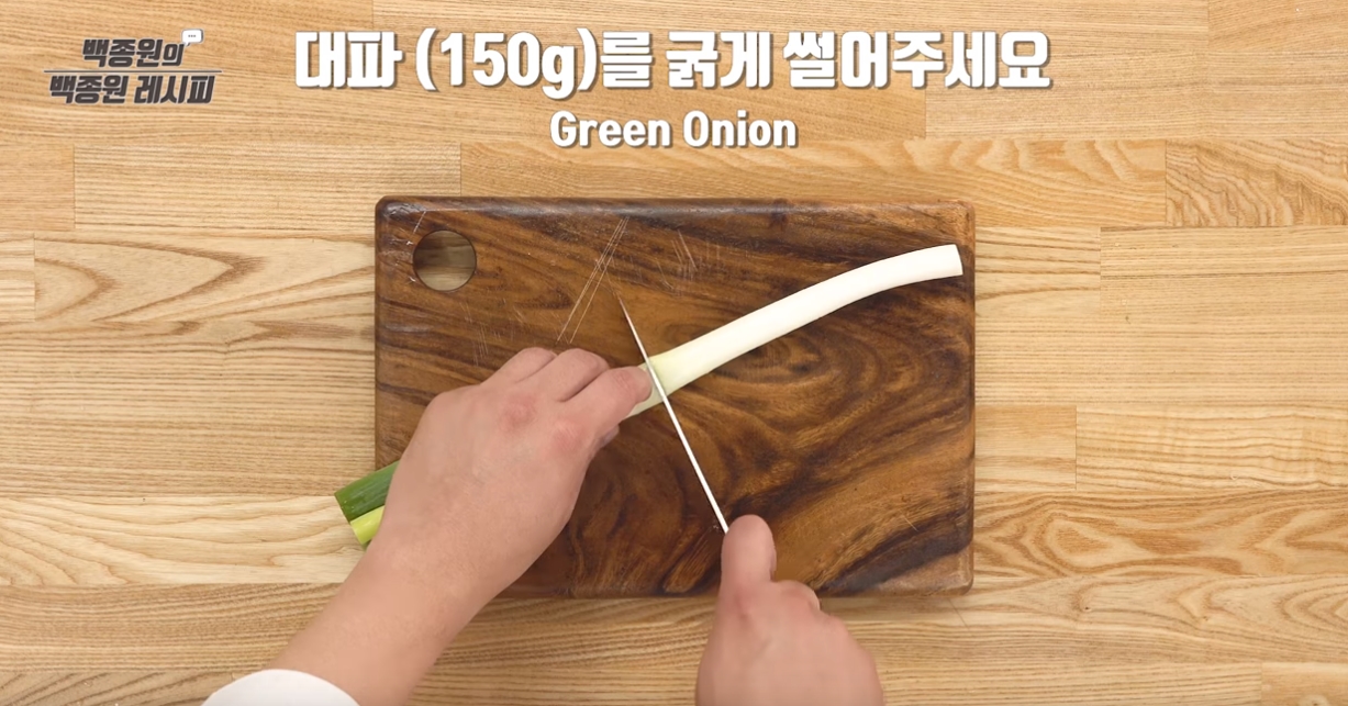 대파와 를 송송송송 굵게 썰어 줄게요!!