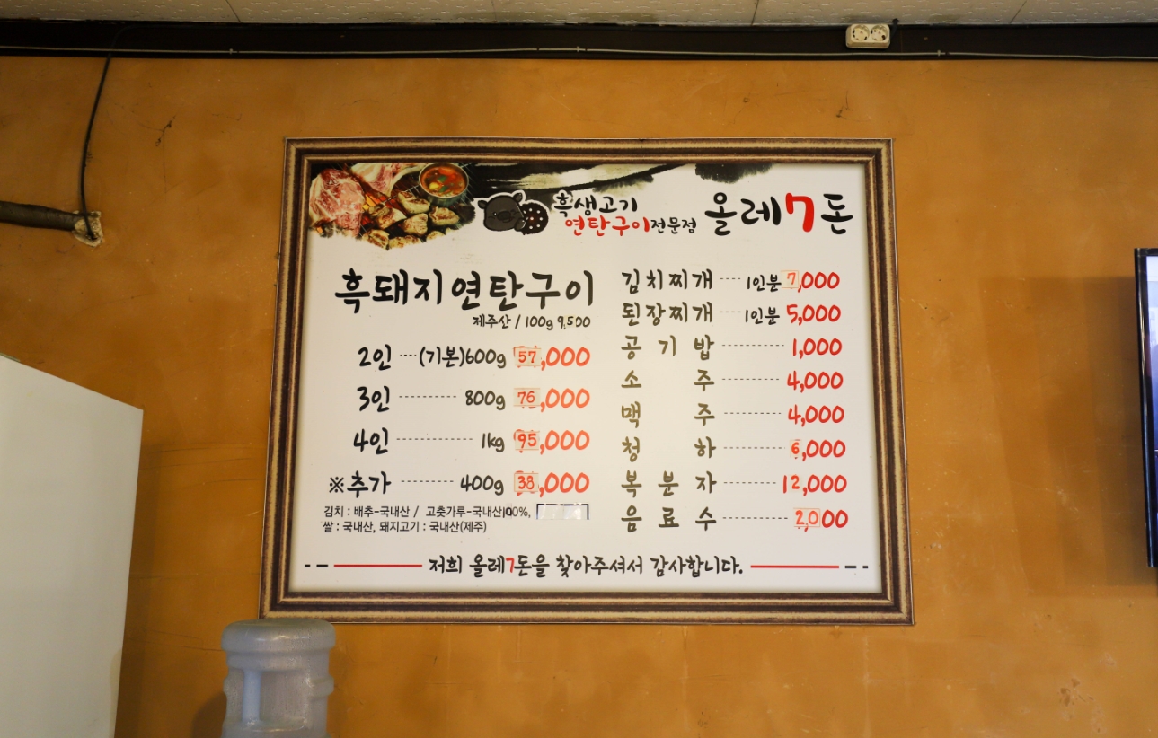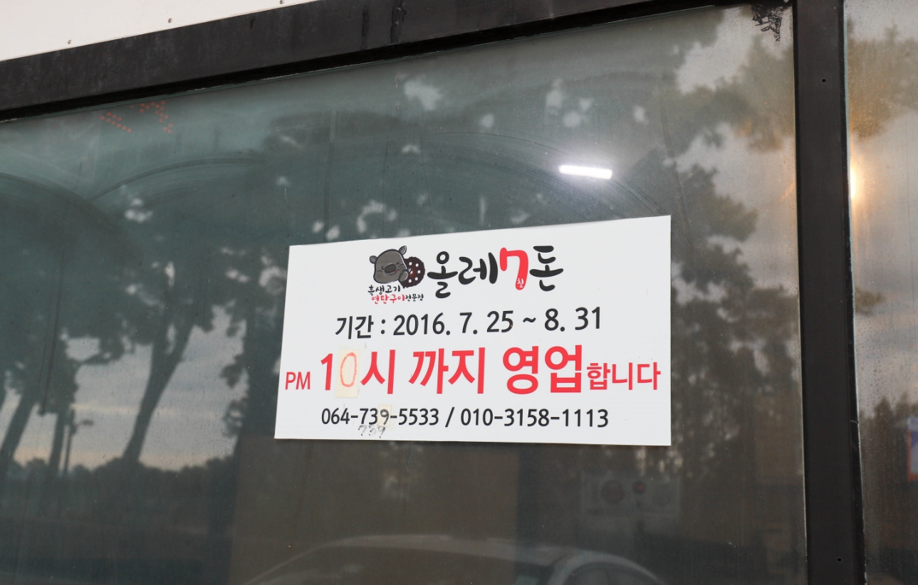 아참 제주도는 내륙과 다르게 외곽에서는 보통 9시면 문을 닫는게 보통이지만 올레 7돈은 밤 10시까지 영업을 한다고 합니다. 기간은 2016년인데 2019년이 되도록 바꾸질 않으시네요! ㅋㅋ 지금도 밤10시까지 운영 할 거에요 ^^
