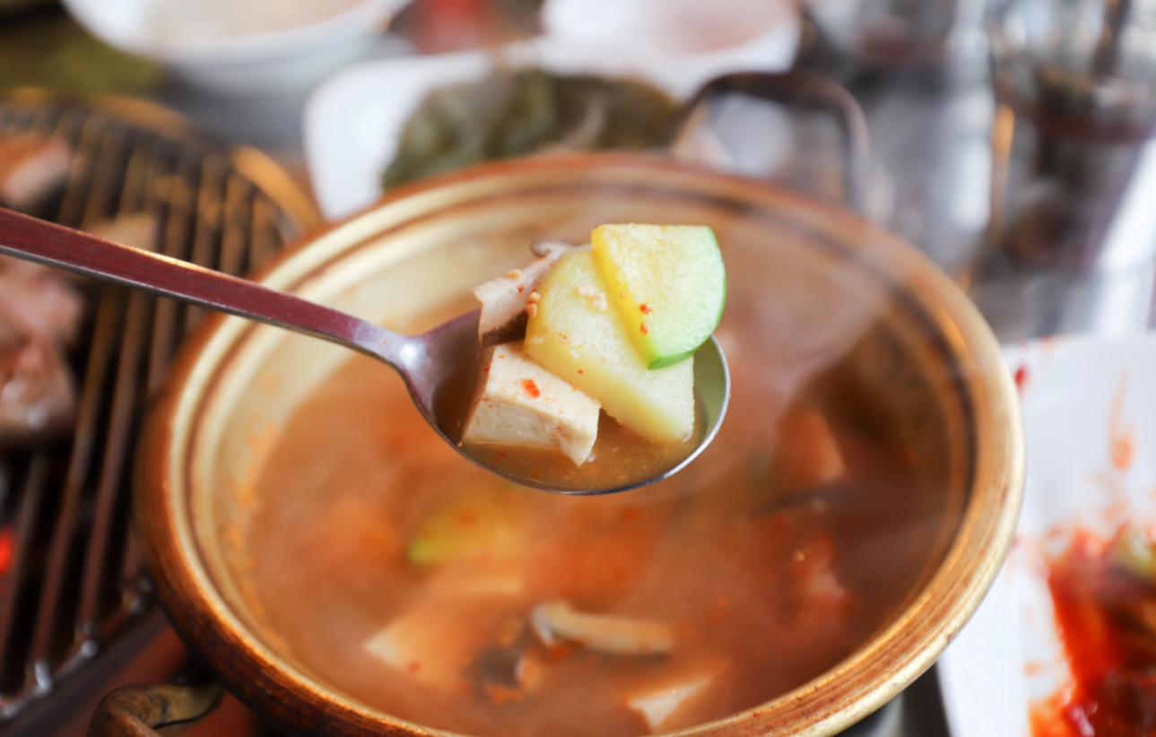 바로 된장찌개입니다! ㅎㅎ 된장찌개와 밥과 같이 먹으면 너무 맛있지 않나요?? 저는 고깃집 가면 무조건 된장을 먹는데 여기서는 집된장을 써서 더욱 구수하고 맛있었던것 같아요