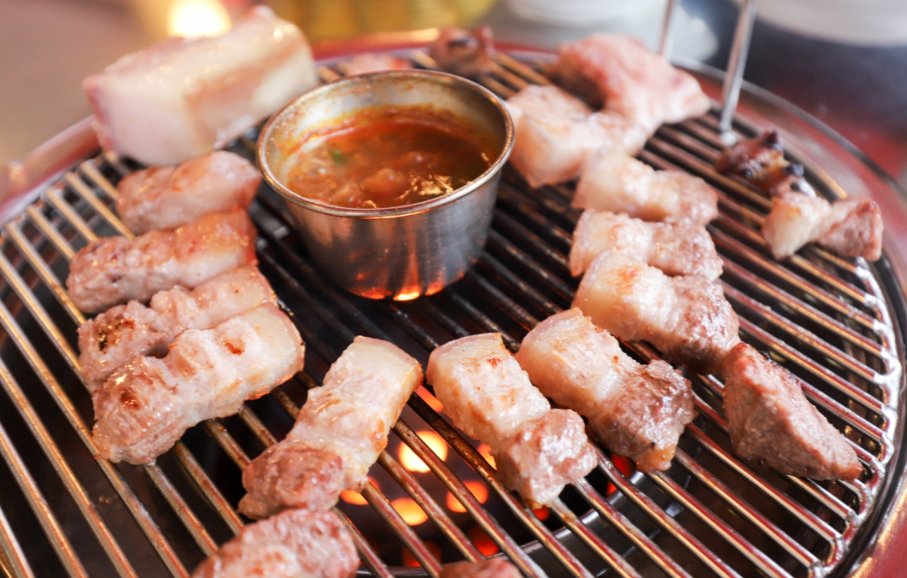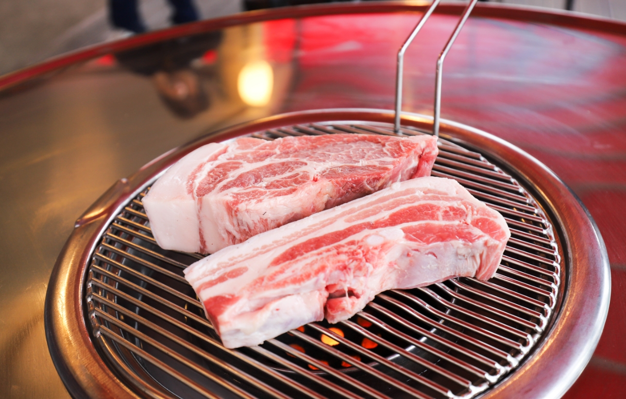 넓은 실내와 포장마차식 테이블이 인상적이었던 곳 ㅎㅎ 아침에 일어나자마자 오픈시간을 확인후 방문하였던곳입니다. ㅎㅎ 이날따라 날씨가 너무 좋아서 저희는 실내가 아닌 밖에서 고기를 구워 먹기로 하였습니다.