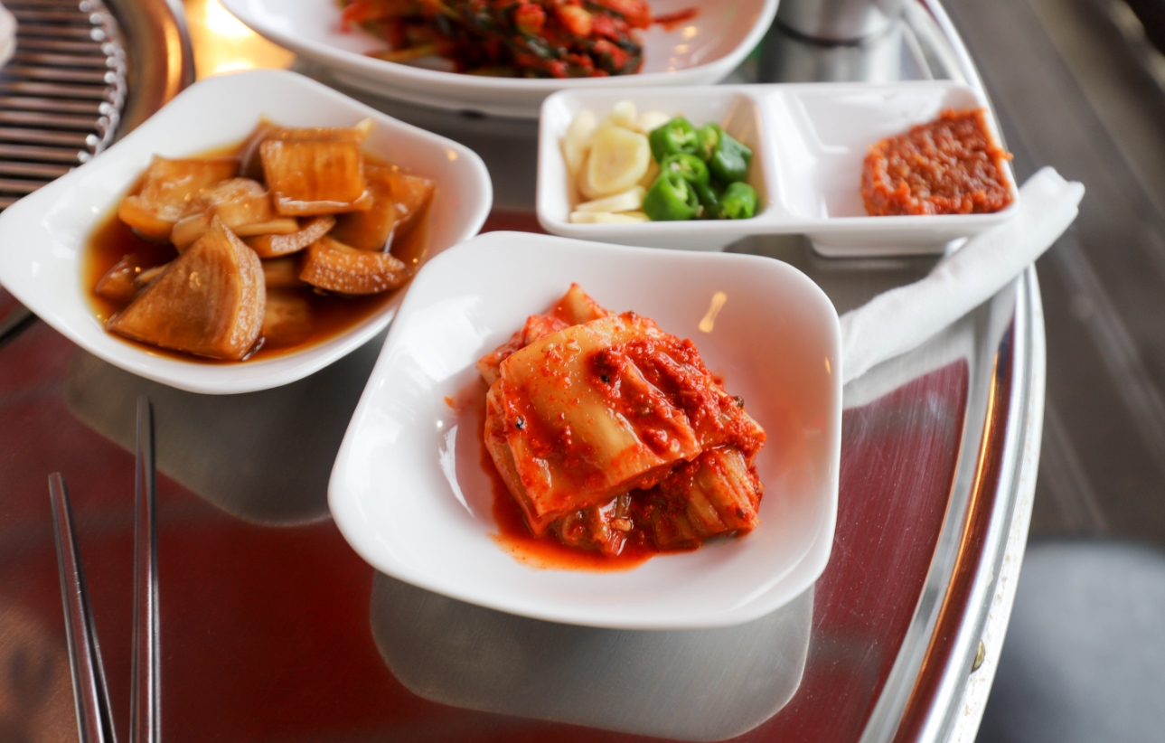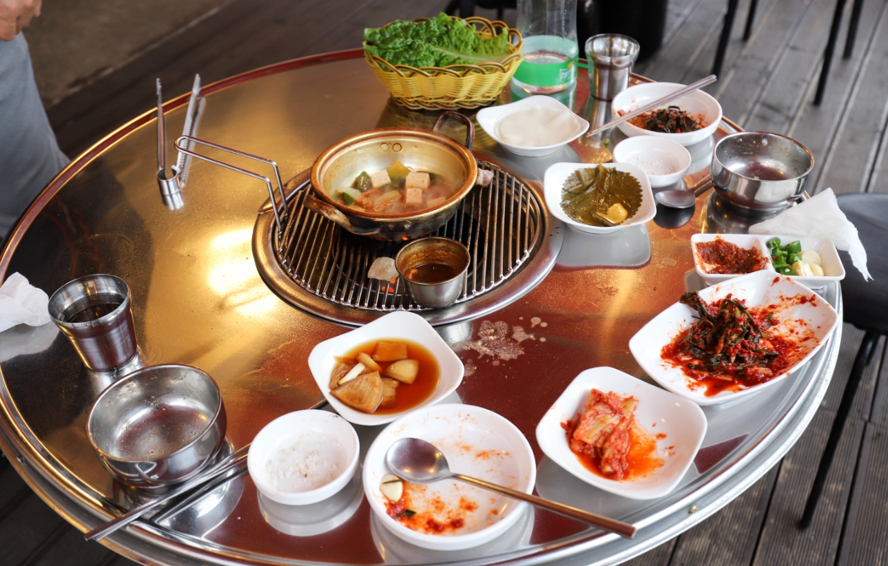 고기를 주문하니 기본 밑반찬을 세팅해 주셨습니다. 주위를 둘러보니 거의 다 밭이 더라구요 사장님께 물어보니 직접 재배해서 다 만든거라면서 ㅎㅎ 딱봐도 사서 판매하는 반찬처럼 보이지 않잔아요!! ㅎㅎ 반찬하나하나가 너무 맛있었어요