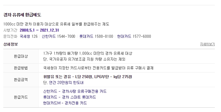 그리고 경차는 유류세 환급 카드가 있다는 사실