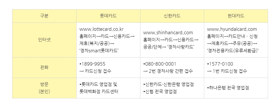 경차사랑카드를 발급을 해야하는데