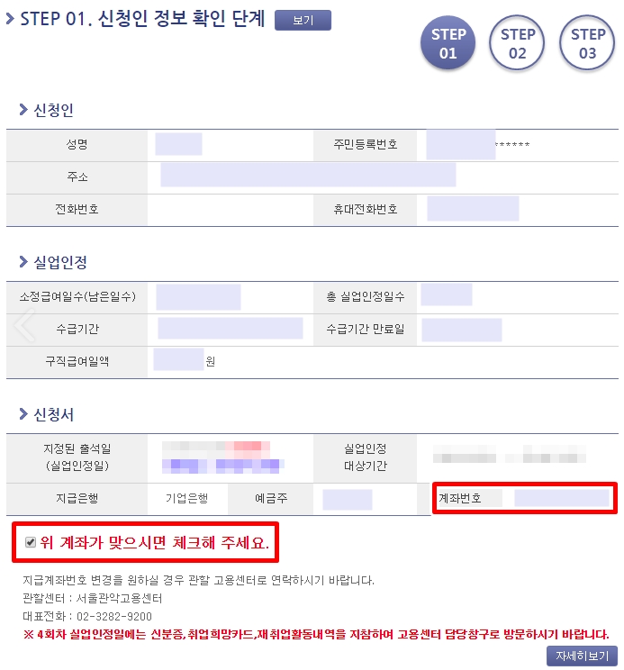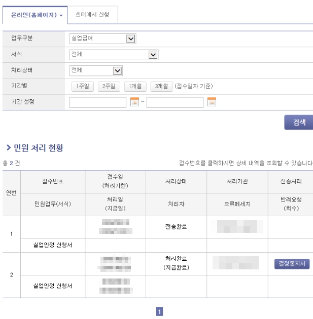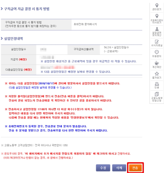이렇게 나오면 실업급여 조건 인터넷 신청방법이 완료 되었습니다.