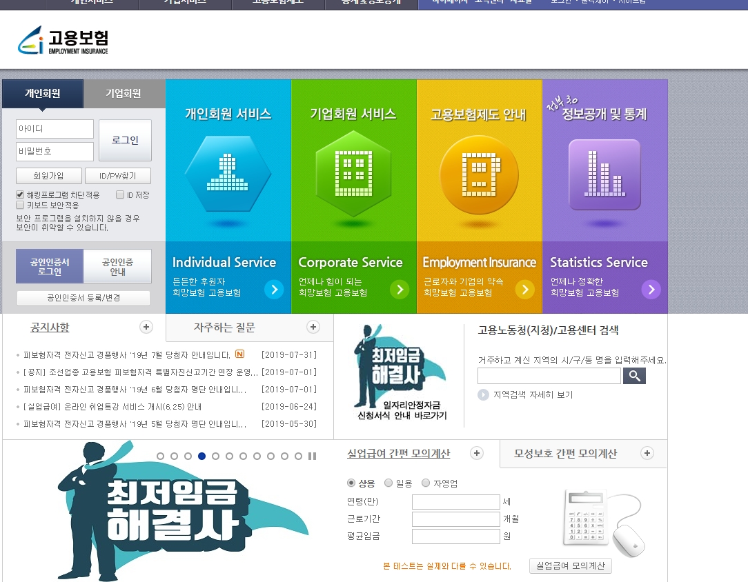 고용보험 홈페이지 방문후 회원가입을 하도록 하겠습니다