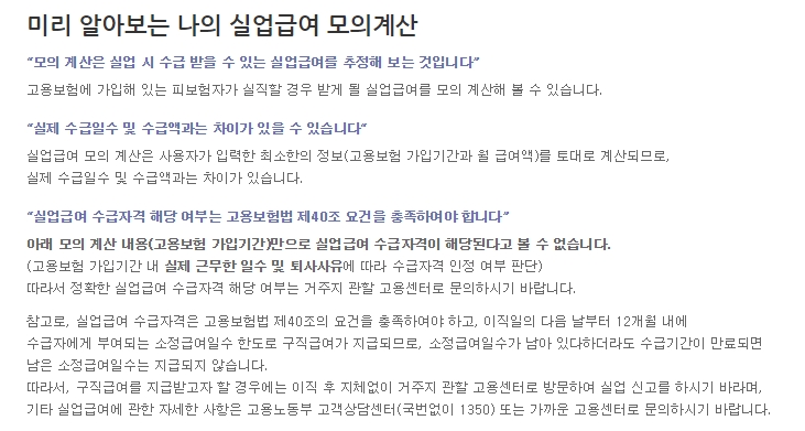 궁금한 분들을 위해 실업 모의 계산 링크 올려 드릴게요