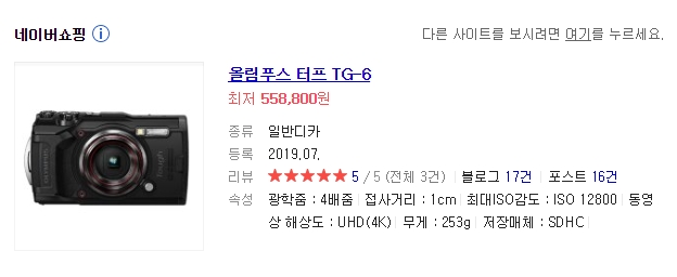 TG카메라는 15m까지 별도 장비 없이 방수가 되는 모델이고
